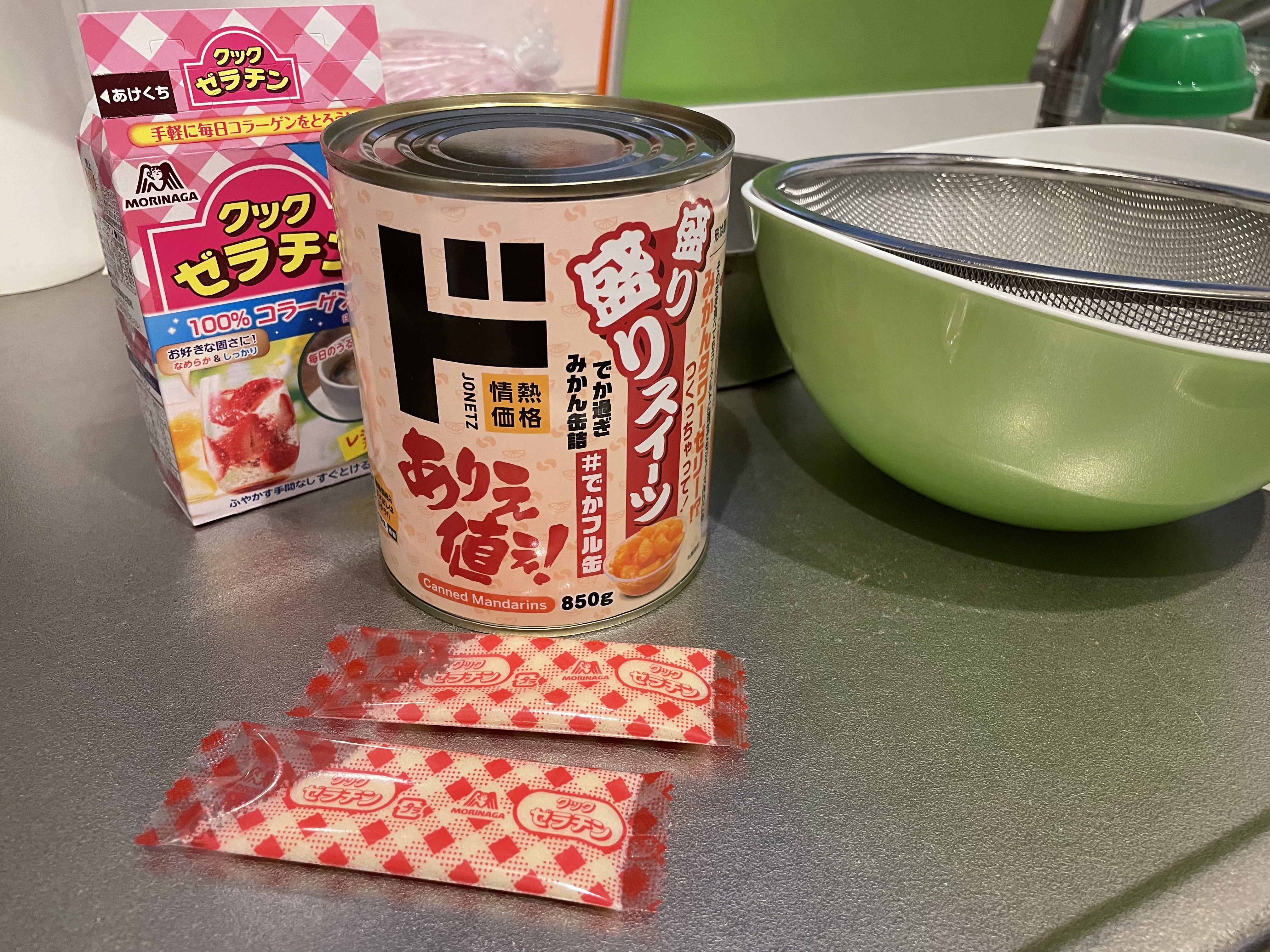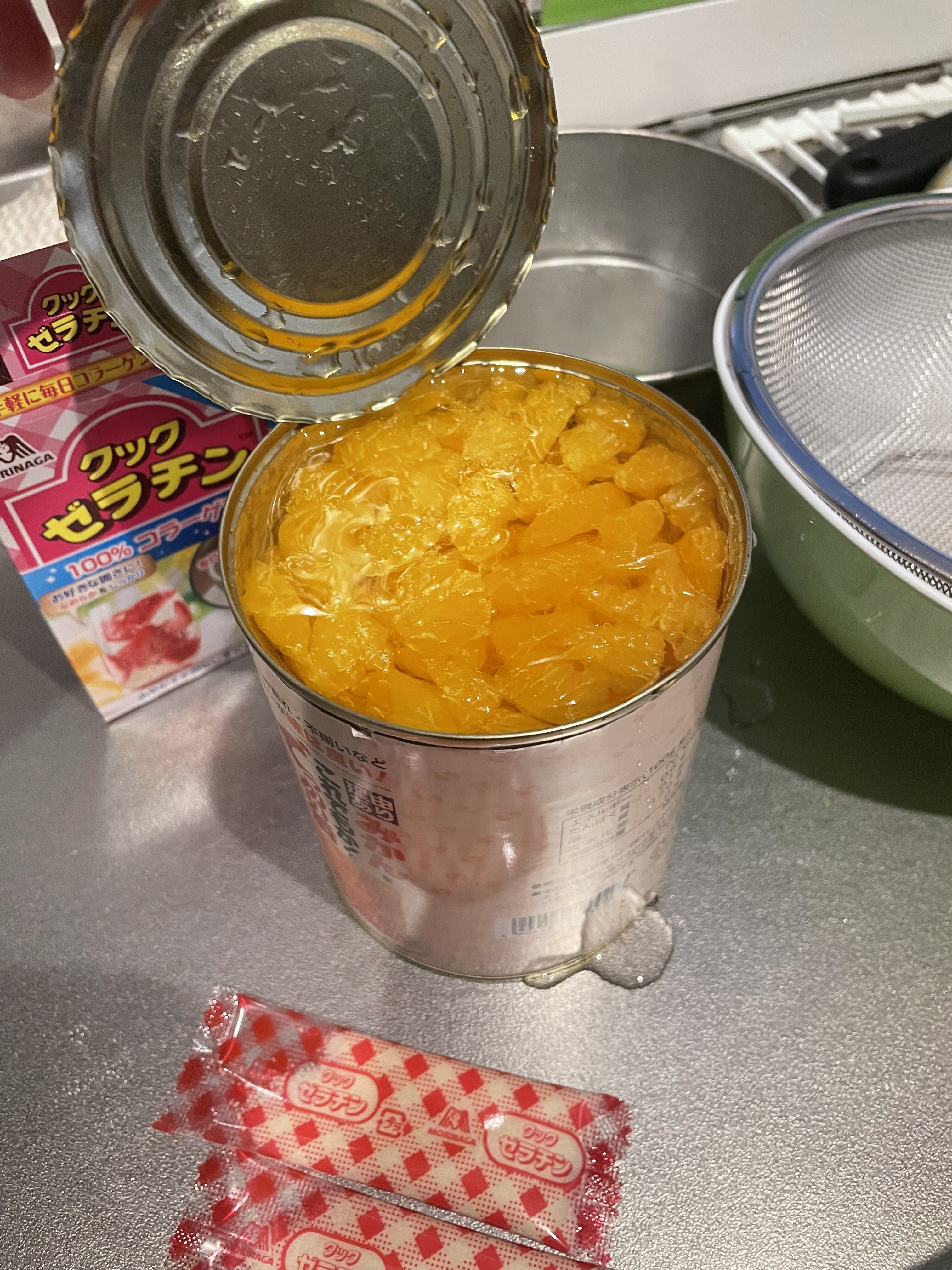 今日は絵日記じゃなくて夢の塊「巨大みかんゼリー」作ったから