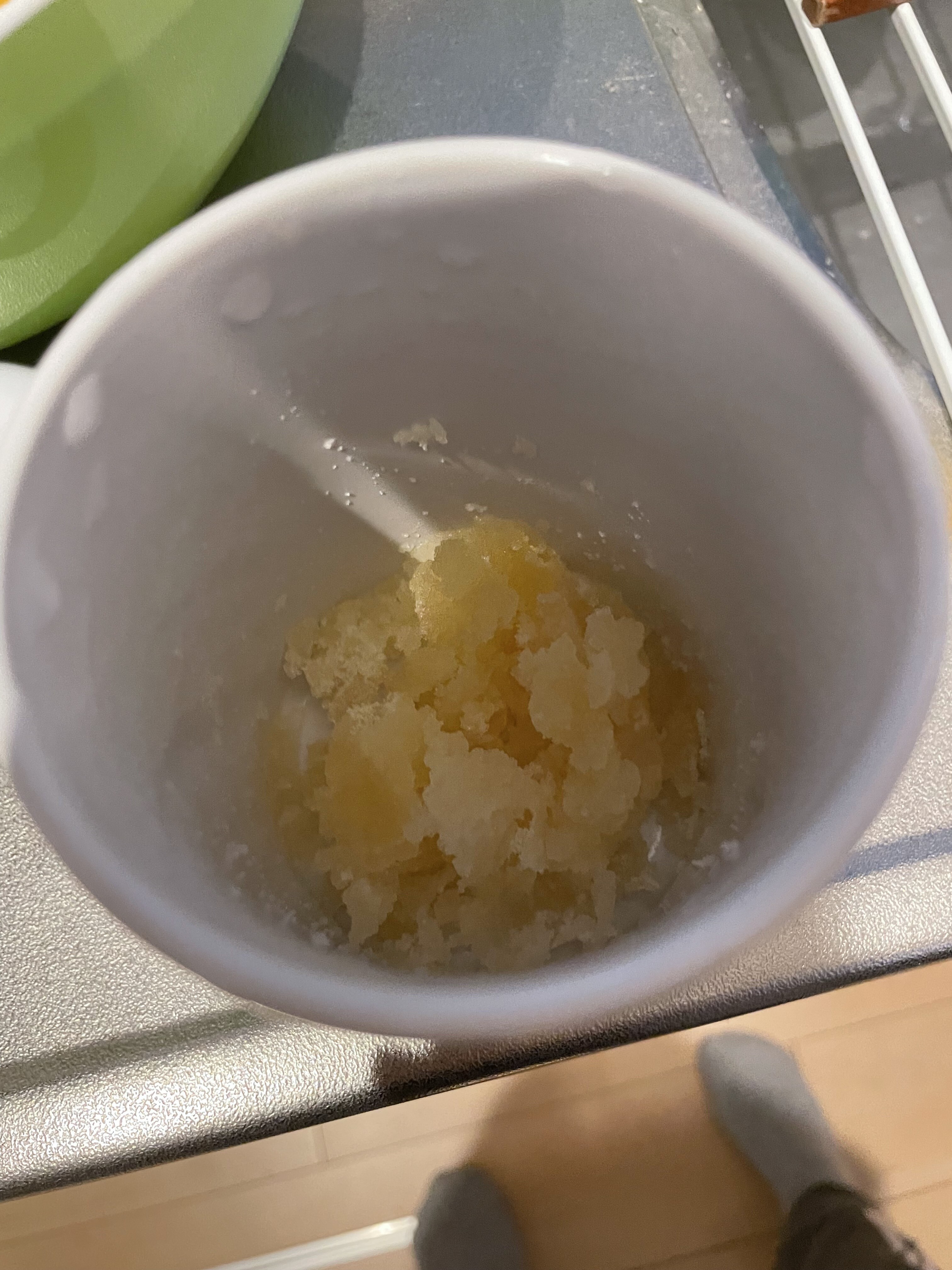 チンしたゼラチンを元のシロップに入れてまた混ぜるんだけど