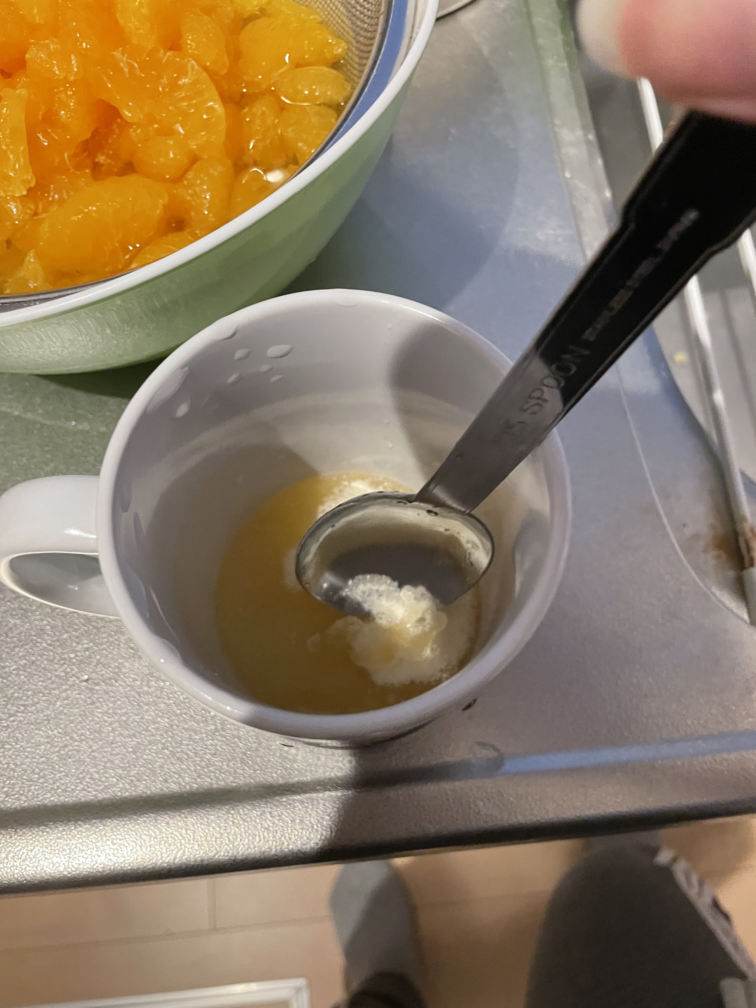 そしたらゼラチンにシロップ大匙3入れて混ぜ尽くせ