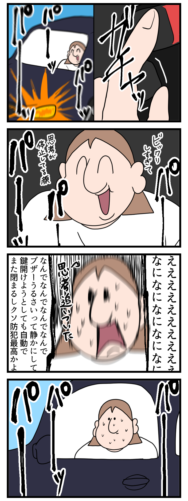 車の鍵閉めた後中から鍵開けるとどうなるか知ってる? 2022年12月18日 00:41 ブザーが鳴りやむまでゆりみちは息を潜める……車のクラクション鳴っちゃうと心臓キュッってならない?にほんブログ村 「ゆりみち」カテゴリの最新記事 タグ :#絵日記#日常漫画#コミックエッセイ#イラスト#車#ブザー#鍵 < 前の記事次の記事 > コメント コメントフォーム 名前 コメント 記事の評価 リセット リセット 顔 星 情報を記憶 コメントを投稿する