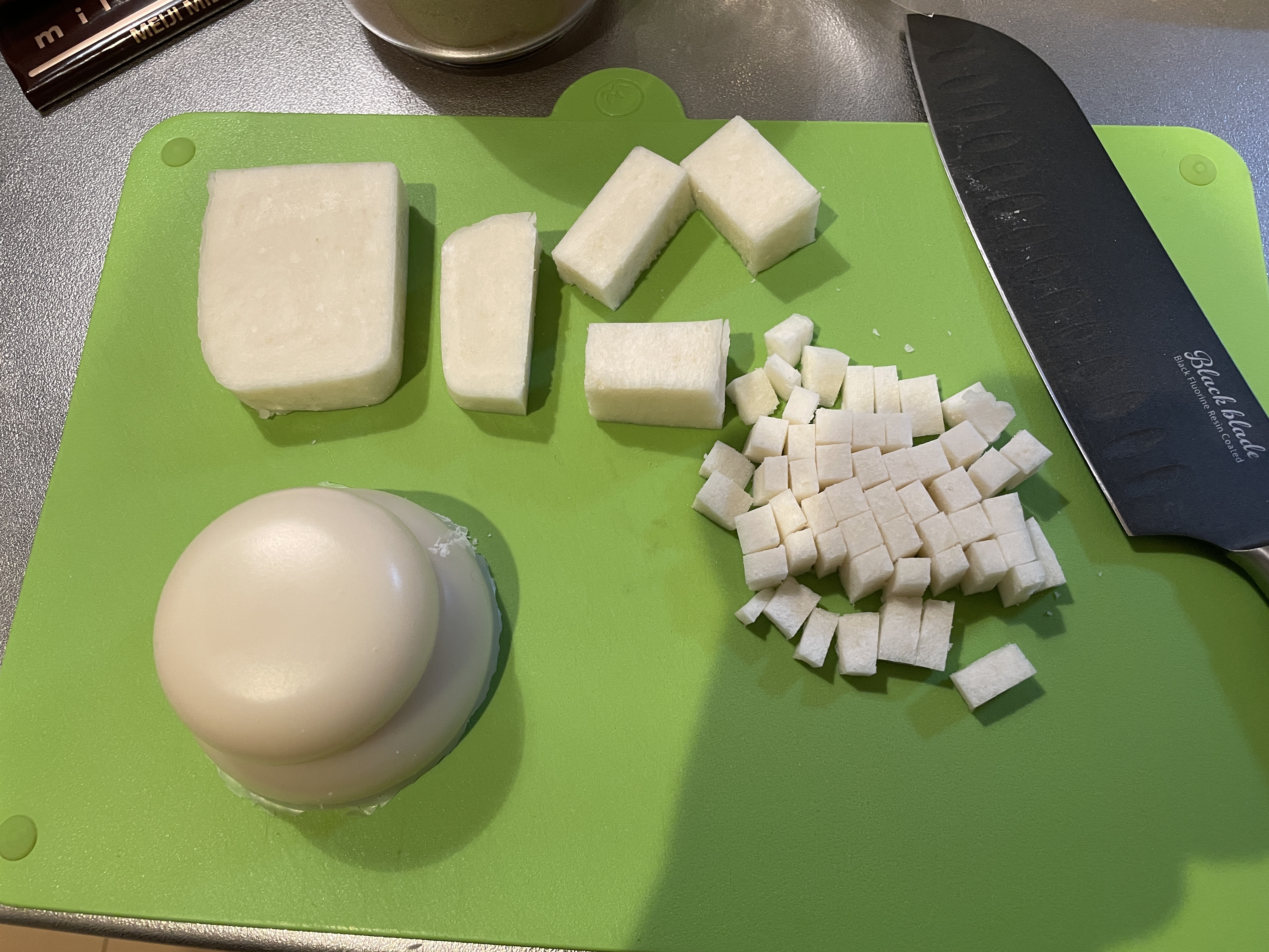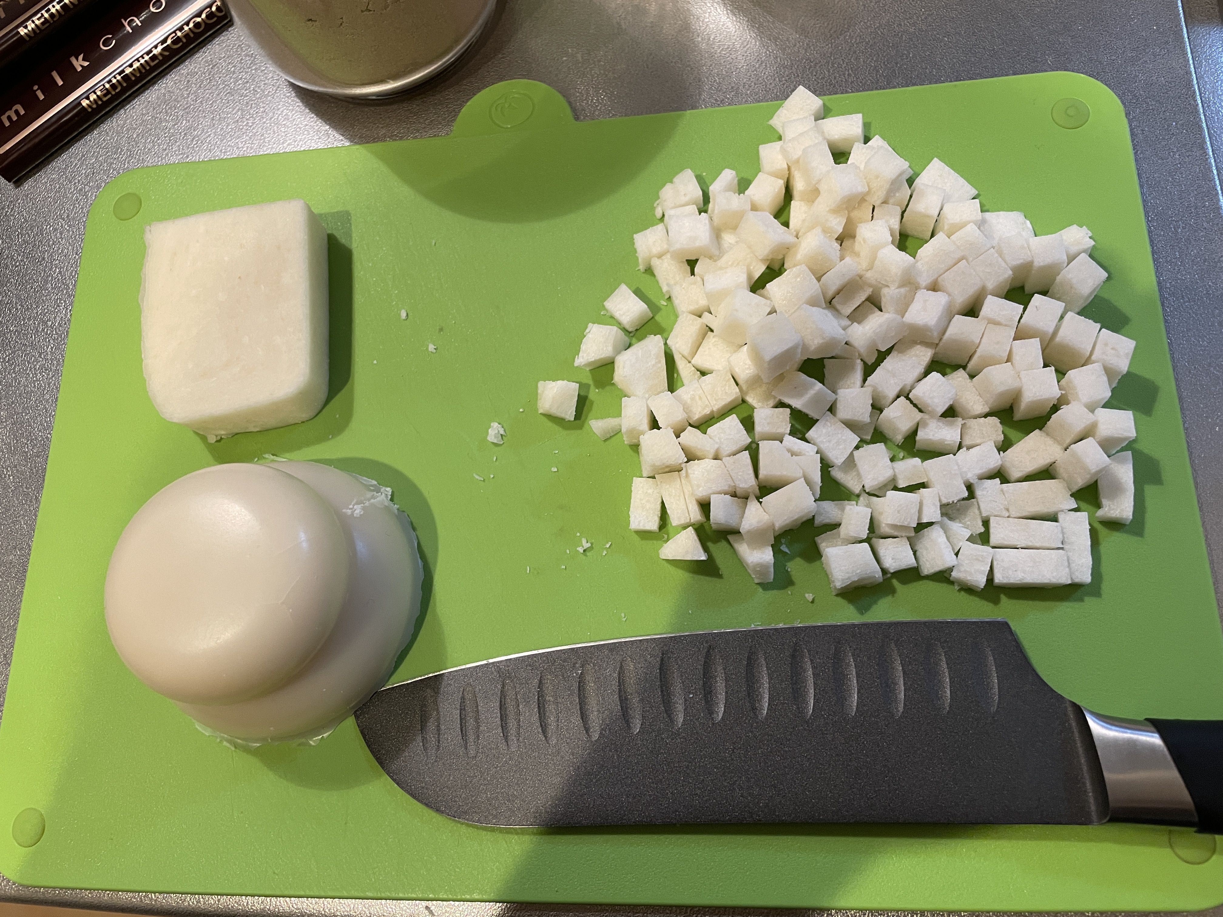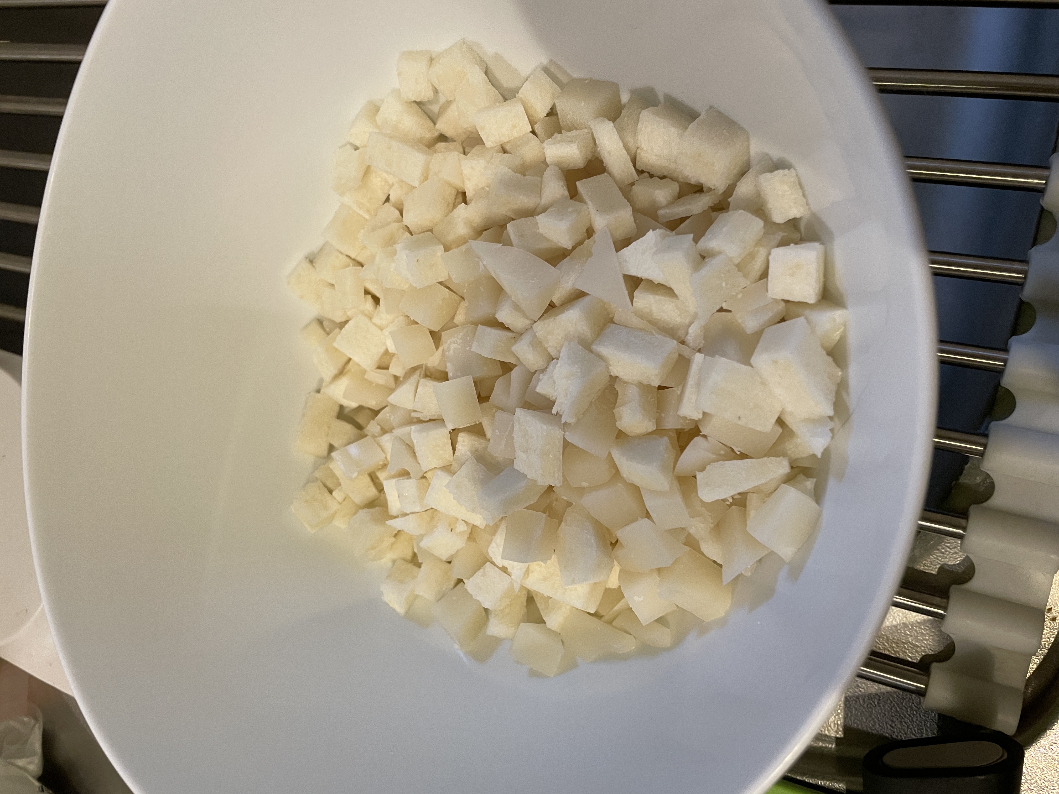まず切り餅をちいちゃく切っていくよ。