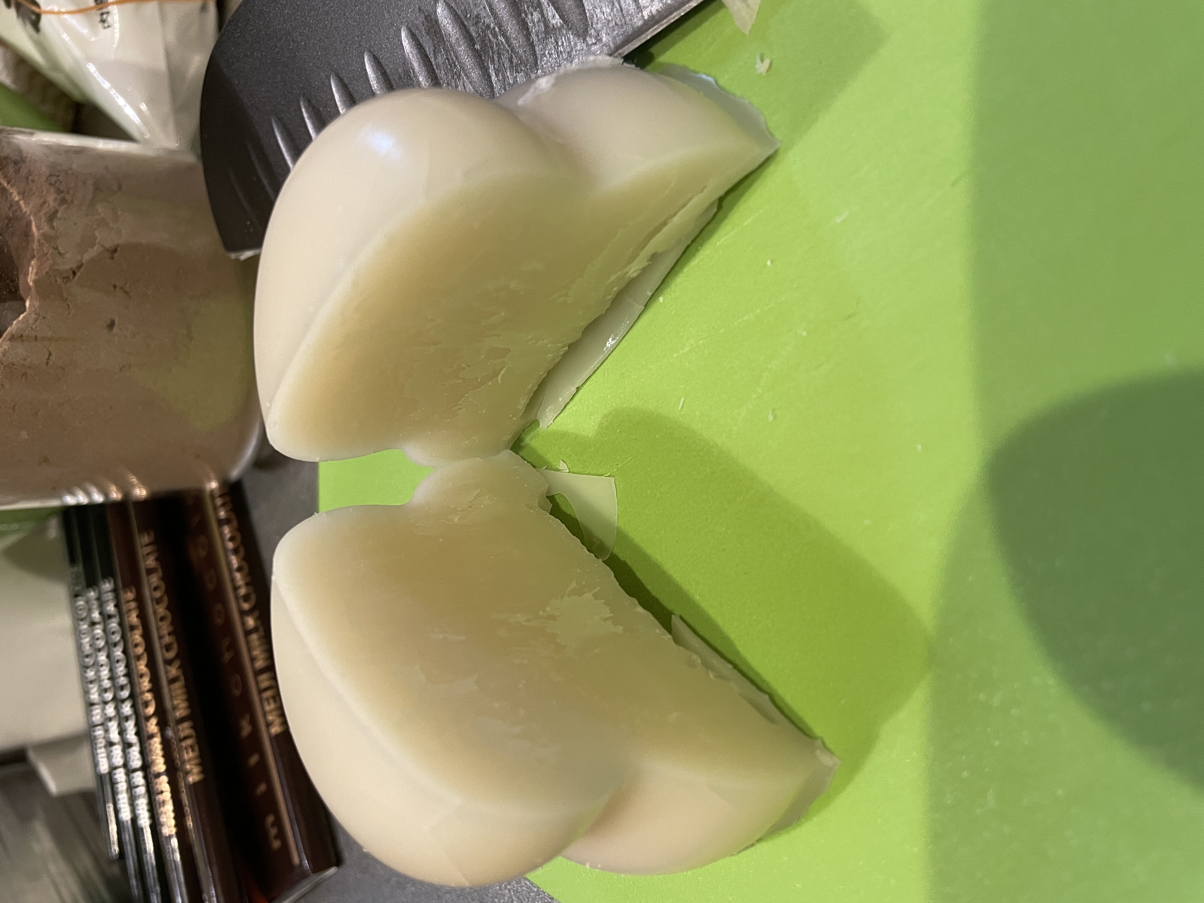 次に餅の中に入れる生チョコ作っていくよ。