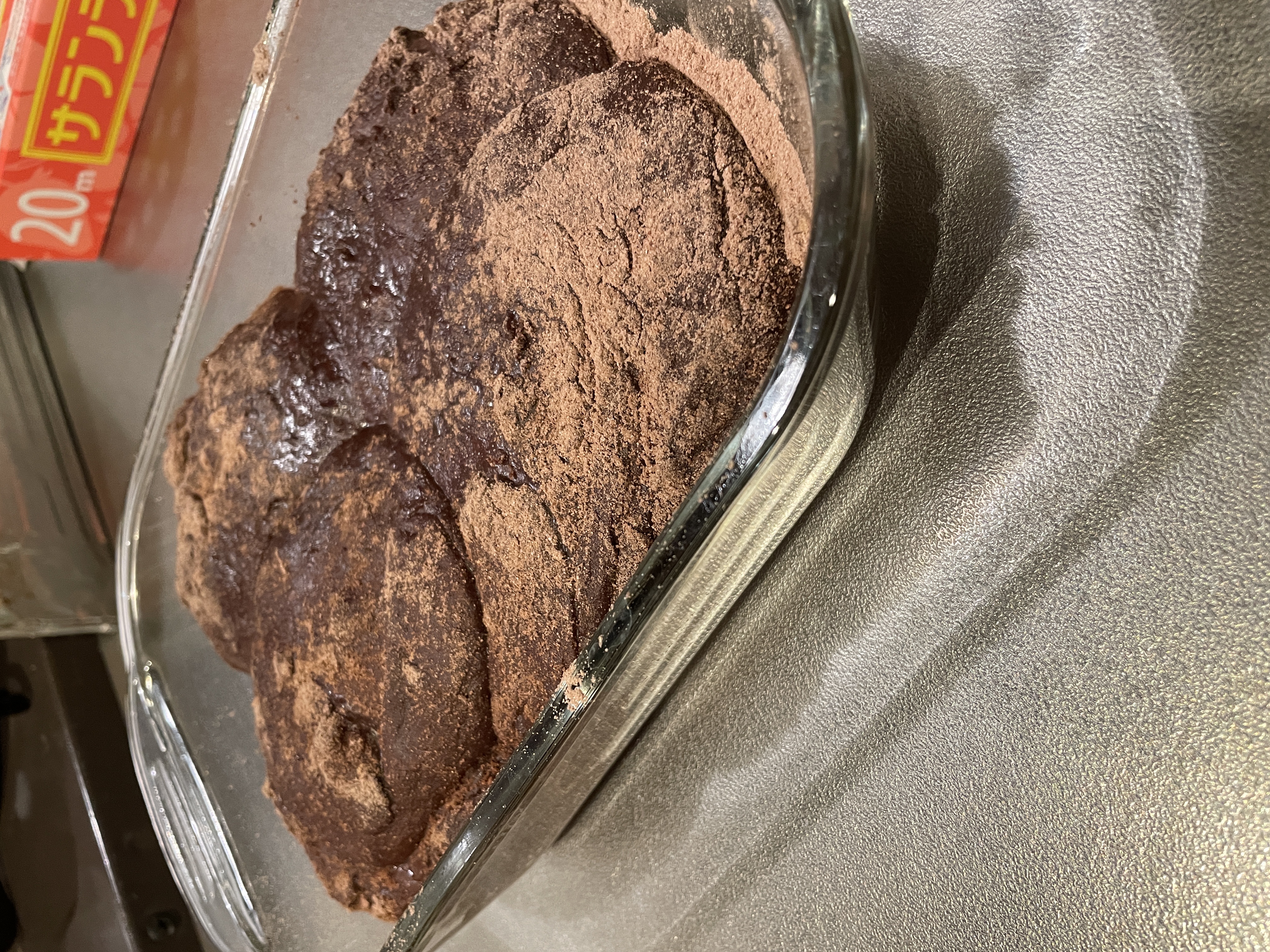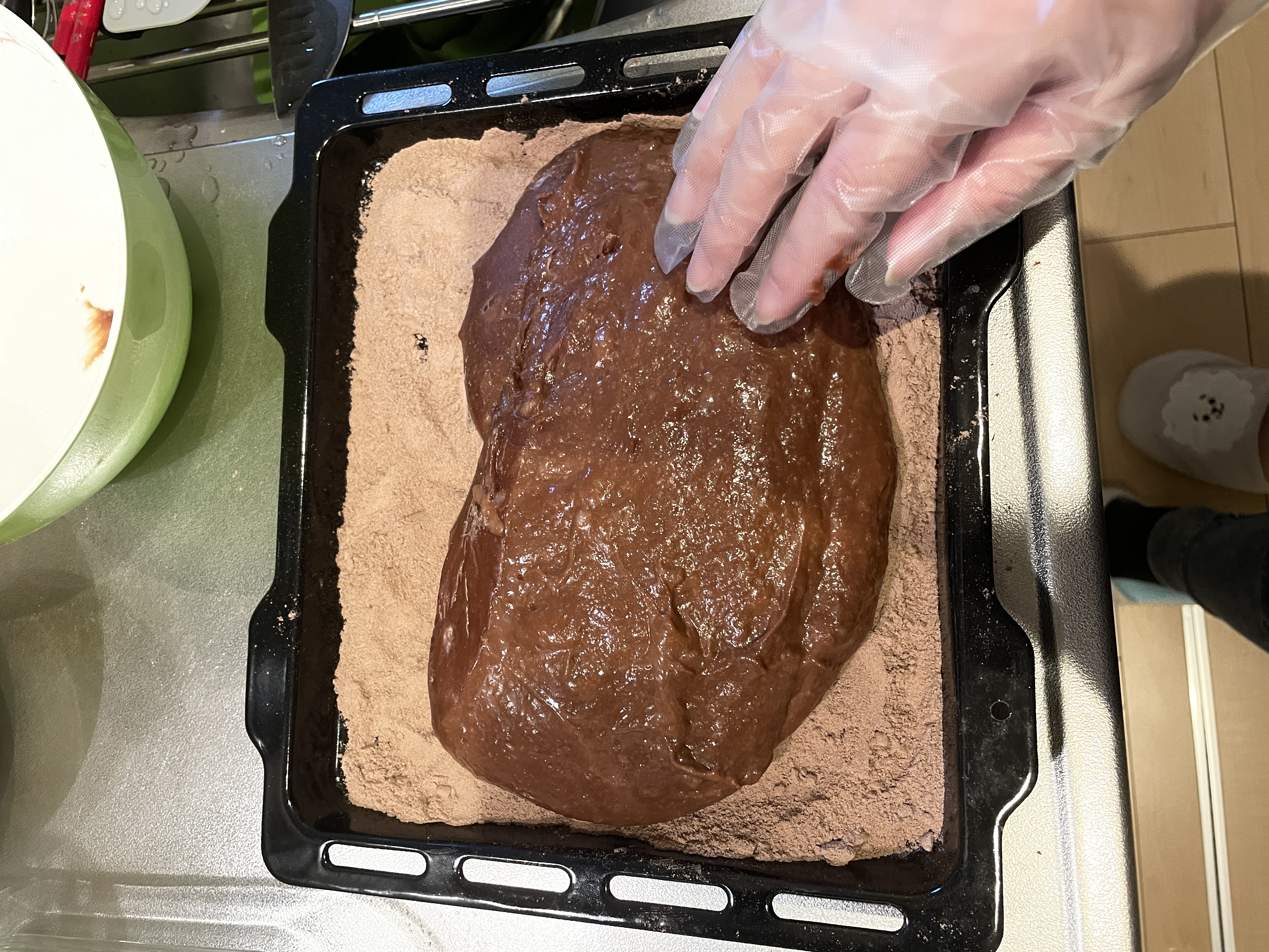 そしたらパットにココアを敷いてそこに餅を伸ばして
