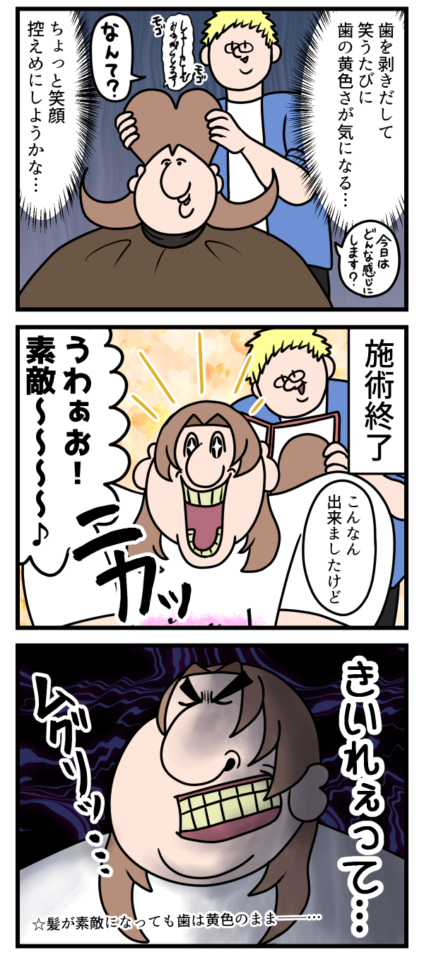 笑顔はこうして失われてしまうのよ 2024年12月02日 12:00 髪を綺麗にしてもらったからつい笑顔になるんだけど鏡に映る歯はまっきっき……すぐにバズってるホワイトニング歯磨き粉ポチッたよね👇ゆりみちにぞっこんかい?それならアプリで読者登録だ!👇にほんブログ村 「ゆりみち」カテゴリの最新記事 タグ :#絵日記#日常漫画#日常絵日記#コミックエッセイ#イラスト < 前の記事次の記事 > コメント コメントフォーム 名前 コメント 記事の評価 リセット リセット 顔 星 情報を記憶 コメントを投稿する