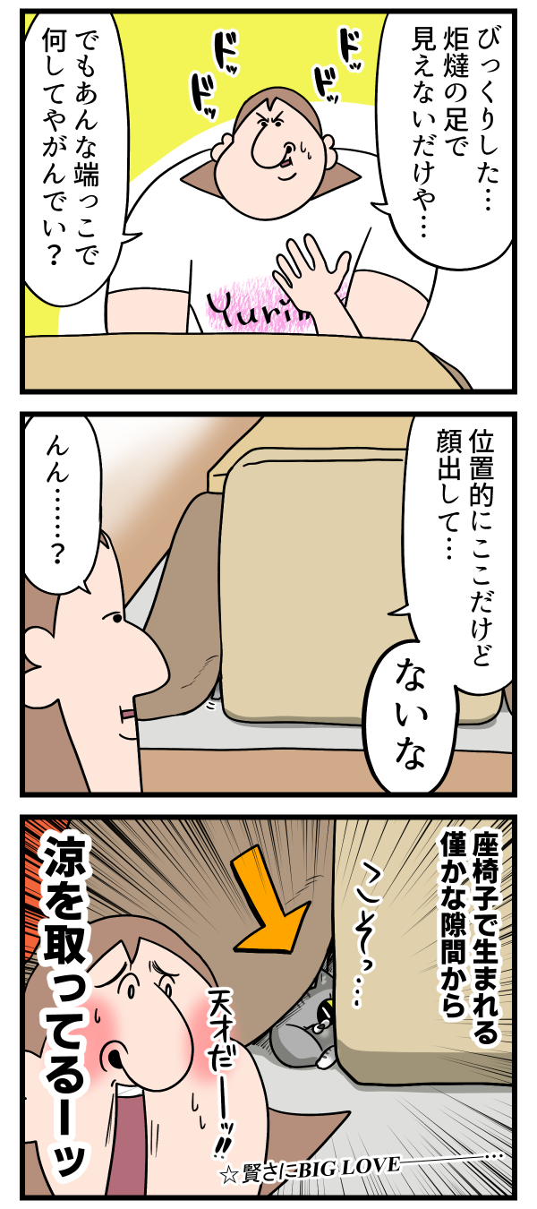 座椅子の隙間から涼をとるなんて気遣いすぎる。